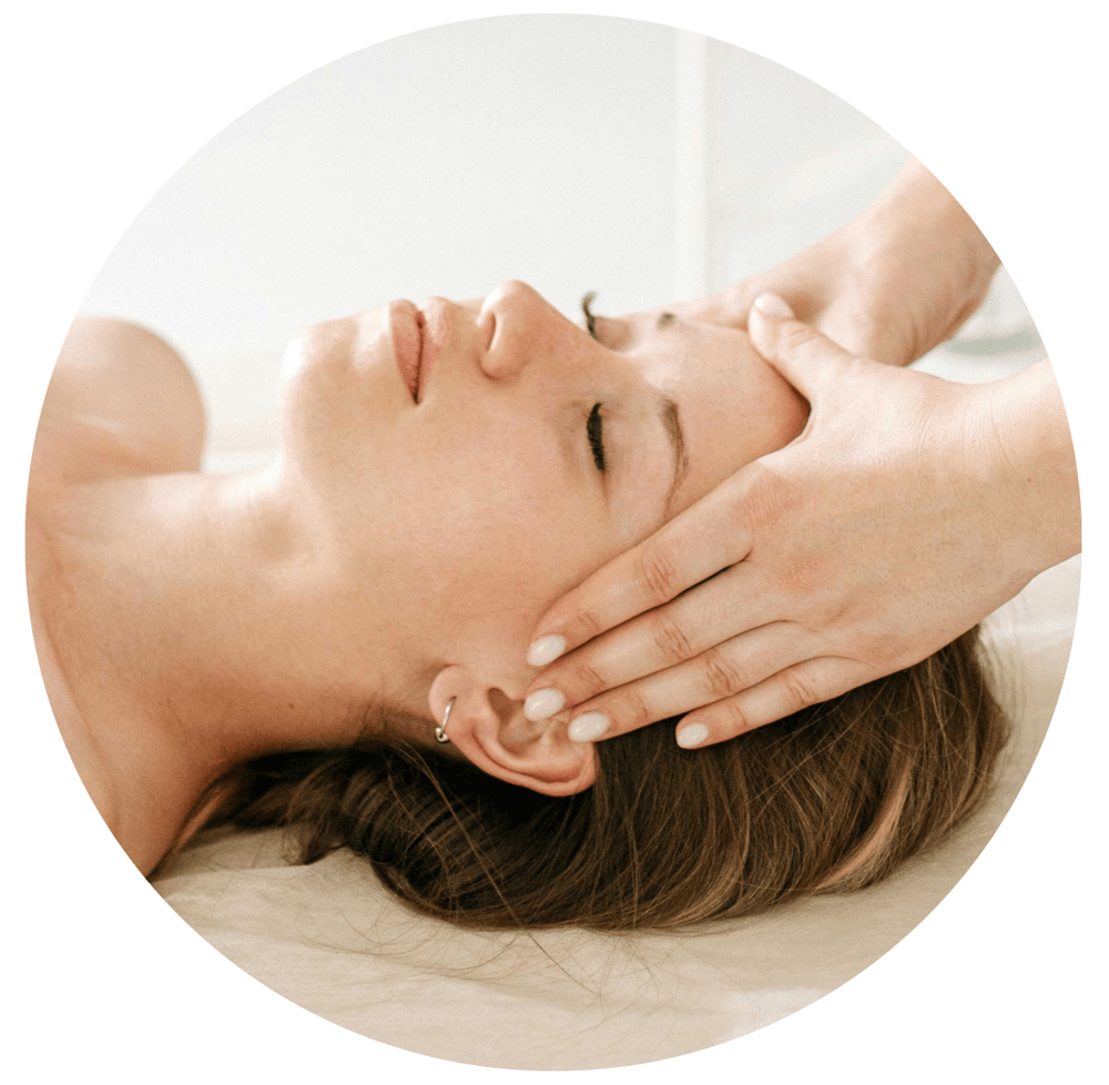 Indian head massage uses a variety of techniques on the scalp, deep tissue work on the shoulders, massaging and stretching the neck and acupressure applied on the face. It helps to promote well-being and inner peace, renew energy levels, improve sleep, to open the third eye and crown chakras and to release energetic blockages.